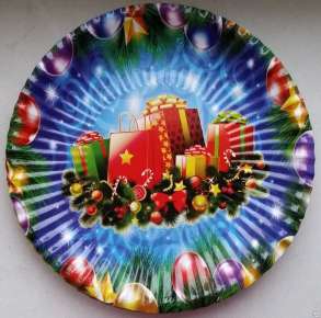 Картонные тарелки одноразовые ламинированные ПОДАРКИ диаметр 230 мм